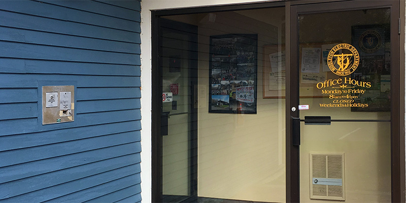 Stop in and pay in person during our regular business hours: Monday thru Friday 8am-4pm. We accept Cash and Checks.